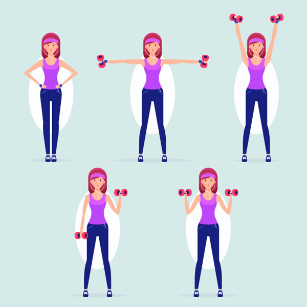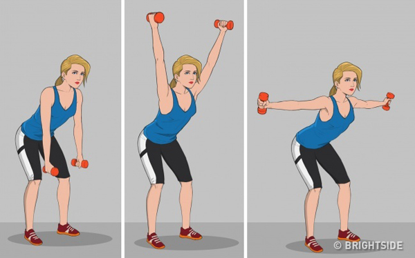 Các động tác tay với tạ đôi giúp làm săn chắc bắp tay. Đây là vùng mỡ thừa khó giảm nhất trên cơ thể. Bạn cần tập luyện thường xuyên để ngăn ngừa tình trạng bắp tay chảy xệ.