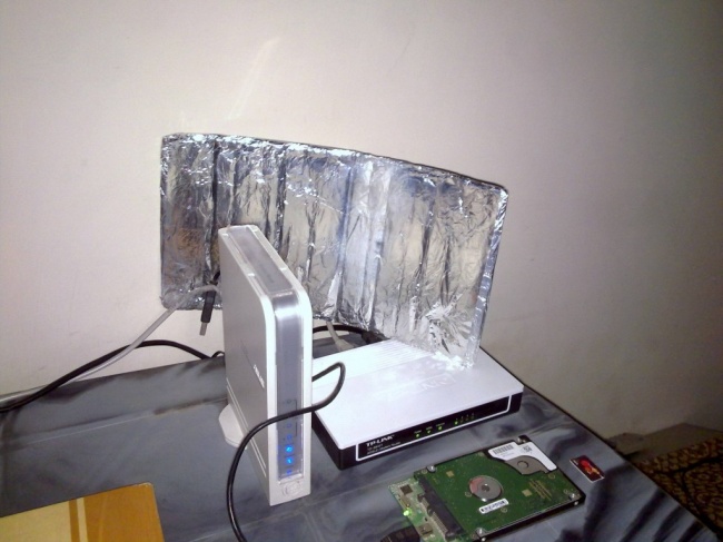 Gập tờ giấy bạc lại thành nhiều lần, sau đó đặt ngay sau ăng-ten như một chiếc màn hình. Tấm giấy bạc sẽ làm cho sóng Wi-Fi trở nên mạnh hơn.