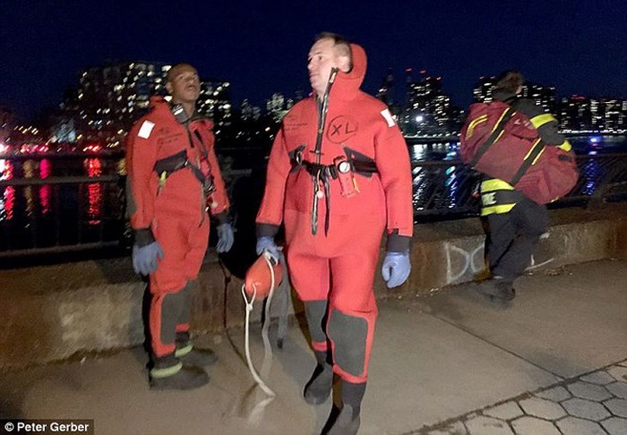 Ngay khi có thông tin, các thợ lặn của sở cảnh sát New York và sở cứu hỏa New York ngay lập tức tham gia vào công tác cứu hộ. Ảnh: Peter Gerber.