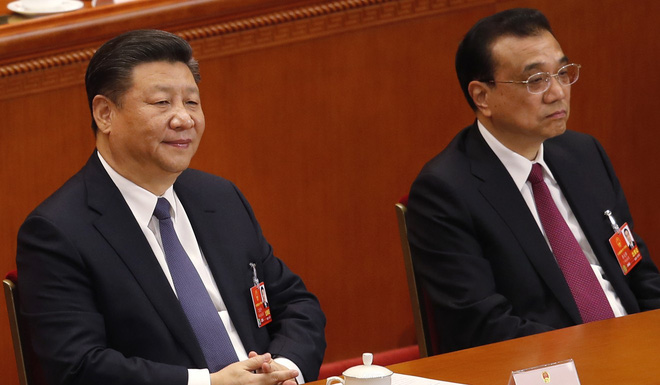 Ông Tập Cận Bình và thủ tướng Lý Khắc Cường trong phiên họp Quốc hội Trung Quốc ngày 11/3 (Ảnh: AP)