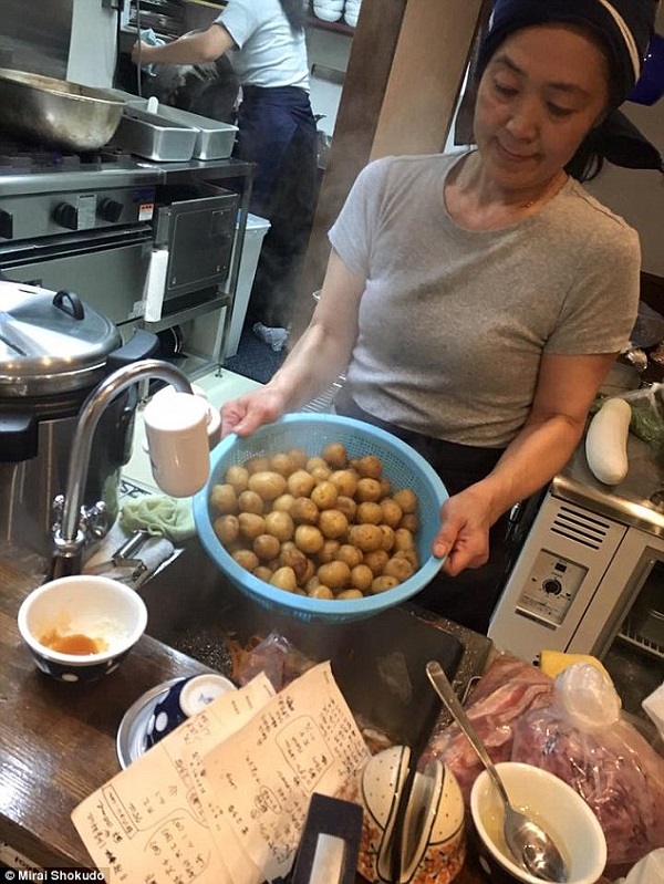 Khách có thể thanh toán cho suất ăn của họ bằng cách làm việc cho nhà hàng Mirai Shokudo trong 50 phút.