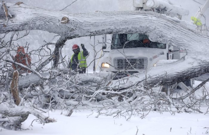Công nhân dọn cây đổ và sửa chữa đường điện bị hỏng do tuyết. Các tòa án tại nhiều bang ngừng hoạt động và các kỳ thi lấy giấy phép lái xe bị hủy bỏ. Người tham gia giao thông được khuyến cáo lái xe an toàn và nhường đường cho các xe dọn tuyết.
