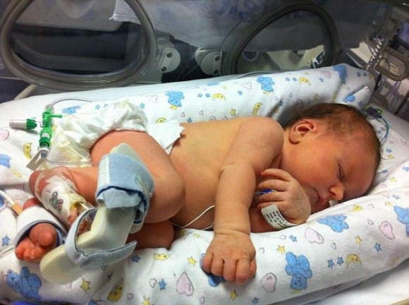 Sau khi sinh, phổi của Gracie ngập máu thay vì oxy. (Ảnh:dailymail)