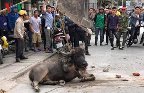 Hôm 16/3, một con trâu xổng chuồng, chạy ra tỉnh lộ, húc lung tung vào các phương tiện giao thông trên đường làm hư hỏng và 2 người bị thương, ông Phạm Trung Hiếu - Trưởng Công an xã Quang Phục (huyện Tiên Lãng, TP.Hải Phòng) cho biết.