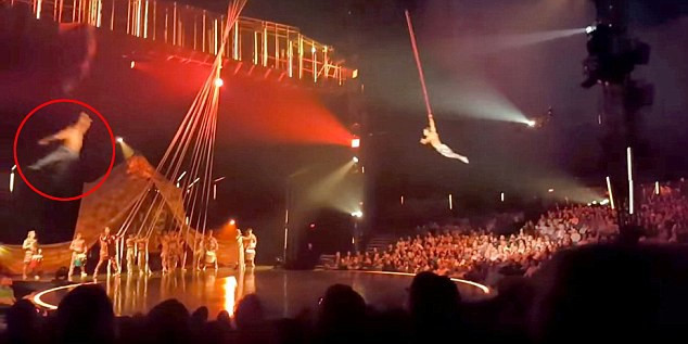 Clip tai nạn khiến một nghệ sĩ xiếc thiệt mạng Yann Arnaud qua đời sau khi ngã từ độ cao khoảng 4 m xuống sàn sân khấu khi đang biểu diễn.
