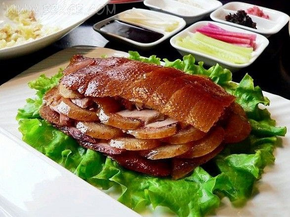 3.Vịt quay Bắc Kinh – Trung Quốc: Với lớp da bóng mượt, giòn tan bên ngoài món vịt quay Bắc Kinh được rất nhiều người yêu thích, thậm chí lớp da còn được phục vụ nhiều hơn phần thịt bên trong. Món vịt quay ăn kèm với bánh tráng, hành tây, sốt hoisin hoặc sốt đậu.