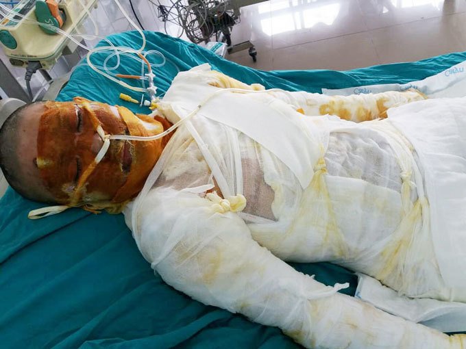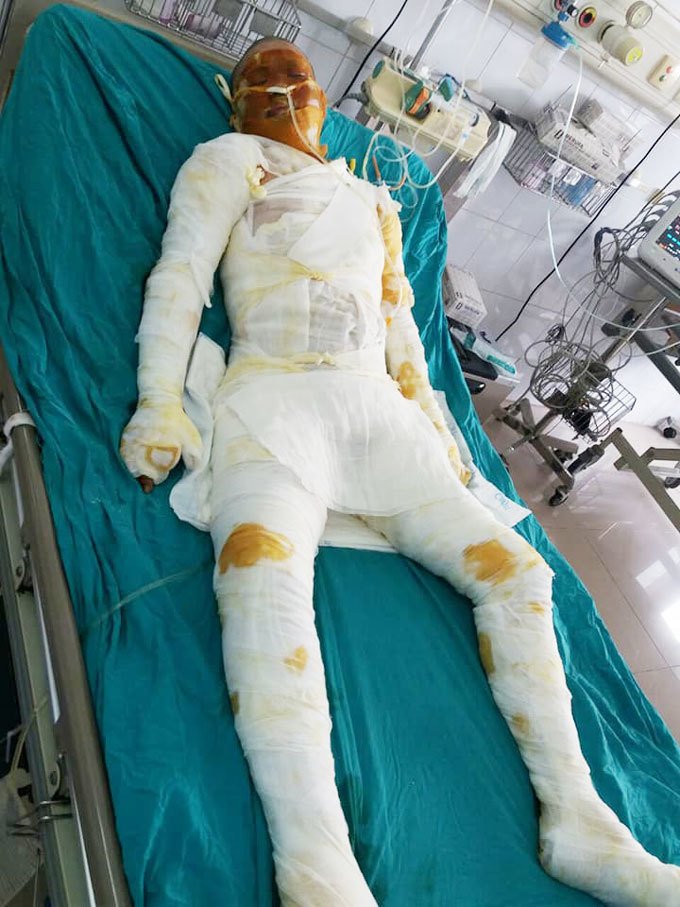 “Em gái tôi nhập Viện Bỏng Quốc gia và được các bác sĩ ở đây xác định bị bỏng nặng 80% toàn cơ thể. Sau 3 ngày điều trị, đến giờ, sức khỏe em gái tôi đã có tiến triển nhưng vẫn còn rất yếu, không ăn uống được gì”, anh Mạnh thông tin.