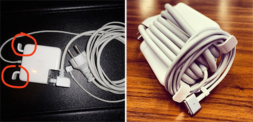 “Đôi cánh” trên thiết bị sạc của Apple: Hãng công nghệ của Mỹ nổi tiếng với thiết kế tối giản. Họ đã nghĩ ra cách để cuộn dây sạc gọn gàng và không bị rối khi tháo ra sử dụng.