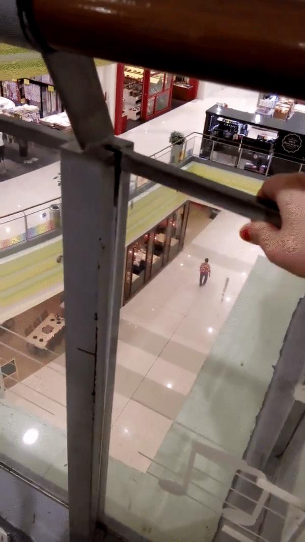 Tấm kính lan can trong một trung tâm thương mại đang thu hút sự quan tâm của dư luận. Theo đó, tấm kính này có thể dễ dàng tháo ra, đẩy ra ngoài bất cứ lúc nào. Nếu bạn không may dựa vào chúng, chúng sẽ rơi xuống ngay lập tức.