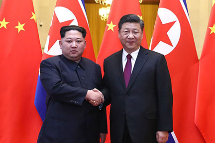Lãnh tụ Bắc Hàn Kim Jong-Un đã gặp Chủ Tịch Tập Cận Bình tại Bắc Kinh ngày thứ Ba, 27 tháng Ba, trong chuyến xuất ngoại đầu tiên của ông Kim từ ngày nắm quyền năm 2011. Tân Hoa Xã của Trung Cộng cho biết ông Kim nói với ông Tập rằng Bắc Hàn sẽ giải giới vũ khí hạt nhân, nếu Mỹ và Nam Hàn đáp ứng những nỗ lực đầy thiện chí của Bắc Hàn. Chuyến đi bí mật bắt đầu từ Chủ Nhật và kết thúc ngày thứ Tư. (Xinhua)