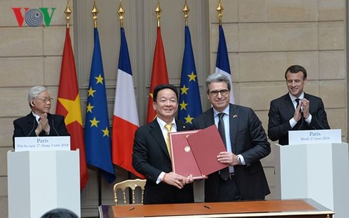 Và chính ngay tại cuộc gặp gỡ này, Tổng Bí thư Nguyễn Phú Trọng đã chứng kiến một số DN hai nước trao 5 văn bản, thỏa thuận hợp tác: Thỏa thuận giữa VietJet Air và Tập đoàn Safran-CFN về cung cấp 321 động cơ và các dịch vụ kỹ thuật, bảo dưỡng cho 148 tàu bay của VietJet Air; hợp đồng giữa VietJet Air và Công ty Gecas France về thuê mua 6 tàu bay A321 neo trị giá 800 triệu USD; Thỏa thuận hợp tác giữa Tập đoàn T&T và Tập đoàn Boyugues về cải tạo sân vận động Hàng Đẫy (trị giá 250 triệu euro); Bản ghi nhớ (MOU) giữa Tập đoàn FPT và Airbus về việc xây dựng năng lực và đội ngũ tư vấn, phát triển nền tảng dữ liệu Skywise của Airbus; MOU giữa Tập đoàn FPT và Tập đoàn Geopost về việc giúp hiện đại hóa hệ thống IT, tăng hiệu quả hoạt động của Geopost.