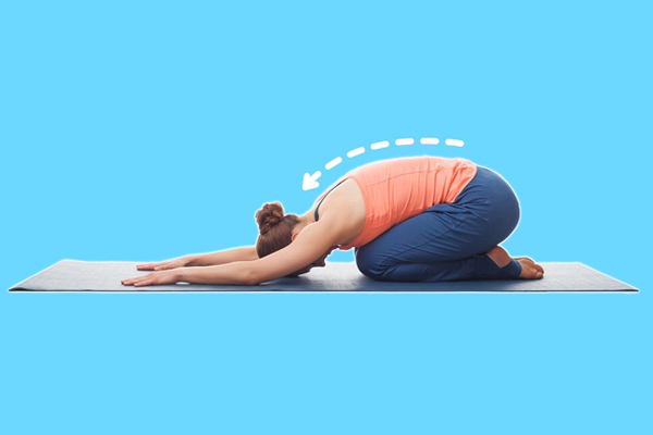Ngồi quỳ trên thảm, hai ngón chân cái chạm nhau, hai tay để lên đùi, hít sâu. Sau đó, từ từ thở ra, hạ thấp cơ thể để ngực chạm đùi, hai tay duỗi thẳng về phía trước. Giữ trong 10 giây rồi trở về tư thế ban đầu. Lặp lại động tác 30 lần.