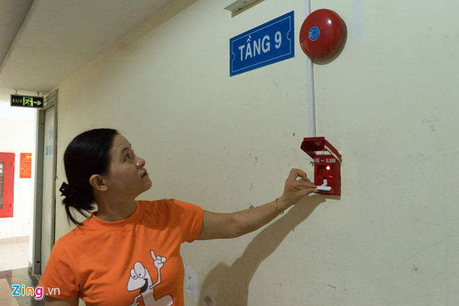 Người dân tố chuông báo cháy tòa nhà không kêu. Ảnh: Thế Trung.