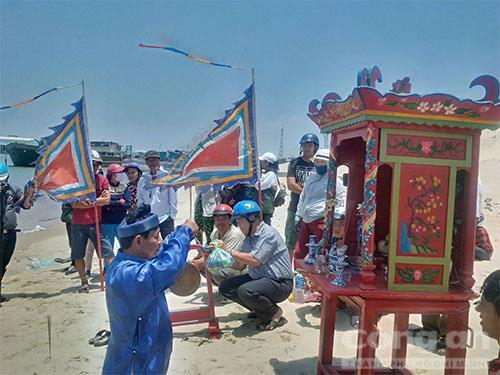 Anh Tấn vội ngưng đánh bắt để lai dắt cá voi vào bờ biển Thương Chánh. Con cá voi này nặng khoảng 3 tấn, đang trong tình trạng phân hủy. Ngay sau đó, nhiều ngư dân các vùng lân cận đã đến làm lễ an táng cá voi theo tục lệ truyền thống của ngư dân vùng biển.