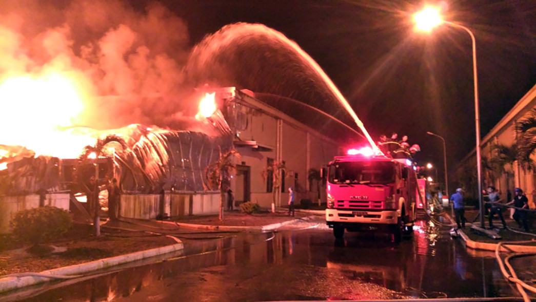 Cháy lớn tại khu công nghiệp sát vùng biên Móng Cái trong đêm
