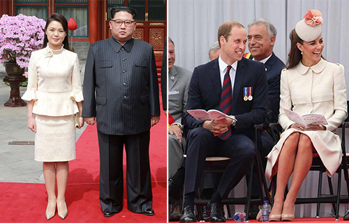 Bộ váy màu kem mà Ri Sol-ju mặc trong chuyến thăm Trung Quốc tuần trước được liên tưởng tới bộ váy của công nương Kate năm 2014. Ảnh: KCNA, Mirror