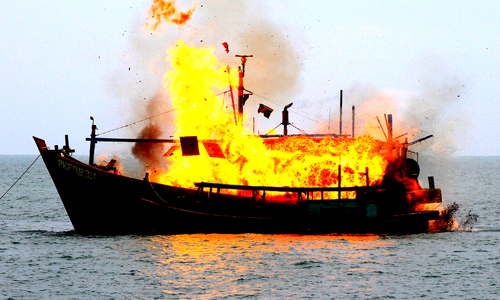 Thuyền trưởng Lê Văn Ngẫu cùng ba người khác đang đánh bắt hải sản trên vùng biển Kiên Giang, cách đảo Thổ Chu khoảng 15 hải lý về hướng Nam, chiều hai hôm trước thì phát hiện tàu bốc cháy dữ dội.