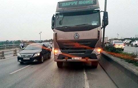 Vụ việc xảy ra vào khoảng 16h ngày 5/4 trên cầu Thanh Trì (Hà Nội). Khi đó, chiếc xe container mang BKS 15C-111.63 đang lưu thông hướng từ Hà Nội về phía cầu Thanh Trì bất ngờ bị hỏng nên phải dừng ngay giữa cầu (làn trái trong cùng).