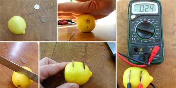 Trong những trường hợp bị mất điện, một quả chanh và 2 đồng xu có thể đem lại nguồn năng lượng đấy. Hãy cuộn tròn quả chanh nhiều lần để nó thật mềm nước, cắt 2 khe trên thân nó rồi nhét 2 đồng xu vào mỗi khe.