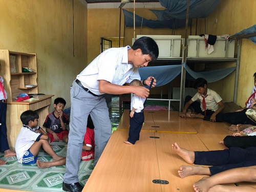 Đến đầu năm 2015 - 2016 cha nó chở xuống trường đón anh trai nó lên, tôi lại vận động và thuyết phục, đưa nó xuống nhà trường sẽ nuôi toàn bộ, nếu nó không chịu ở thì lại chở nó lên.