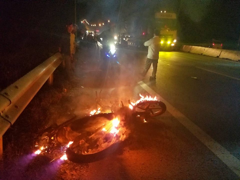 Cú va chạm khiến hai cô gái ngã xuống đường xây xước nhẹ, còn chiếc xe máy bị bốc cháy ngùn ngụt. Điều đáng nói, sau khi xảy ra va chạm, hai người đàn ông trên chiếc xe Mazda dừng lại nhưng không đỡ 2 nạn nhân dậy và có biện pháp dập lửa mà còn gây sự, sau đó đập vỡ điện thoại iphone của một người điều khiển xe SH mang BKS 15N1 – 178.98 khi phát hiện người này dùng điện thoại để quay phim lại sự việc rồi tiếp tục bỏ chạy.