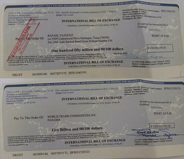 Một người Mỹ gốc Mexico đã sang Việt Nam với 2 tờ phiếu giá trị 5 tỷ USD nhằm kêu gọi đầu tư. Rafael Vazquez Flores (người Mexico, quốc tịch Mỹ), Chủ tịch Công ty World Trade Commodities Inc Panama, cùng 2 tờ hối phiếu ghi trị giá hơn 5 tỉ USD phát hành từ chính phủ Mỹ.