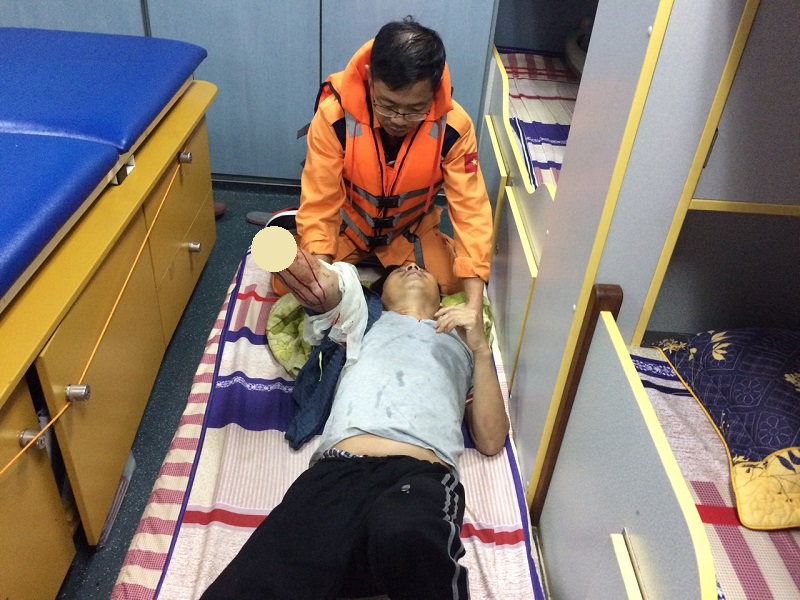 Thuyền viên đã được đội cứu hộ tới kịp thời trong tình trạng sức khỏe xấu, mất bàn tay phải.