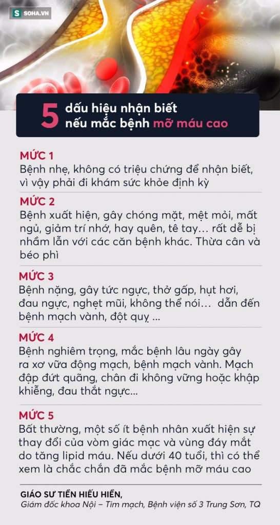 Theo giáo sư Tiền Hiếu Hiền, Giám đốc khoa Nội – Tim mạch, Bệnh viện số 3 Trung Sơn, Trung Quốc, có 5 đặc điểm nổi bật này chứng tỏ bạn có thể đã mắc bệnh mỡ máu (tăng lượng lipit trong máu hoặc cholesterol cao).