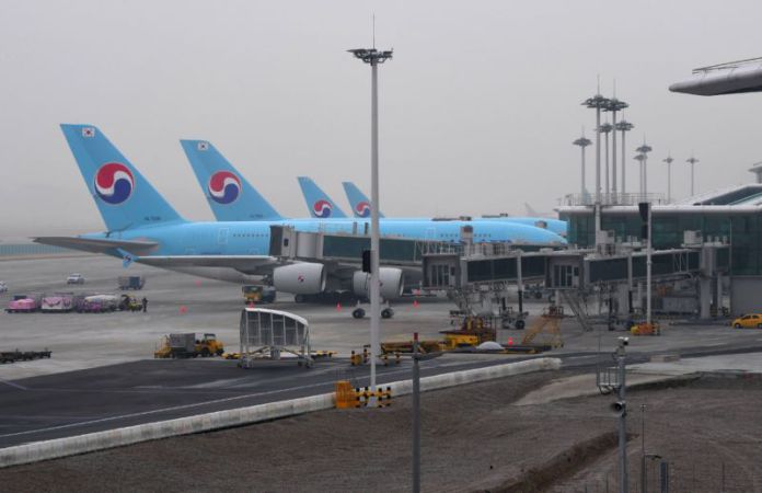 Chủ tịch công ty Korean Air hôm Chủ Nhật ngỏ lời xin lỗi về cách cư xử thô lỗ của hai con gái mình, cho hay rằng hai người này sẽ ngay lập tức phải rời khỏi chức vụ trong công ty. (Hình: Jung Yeon-Je/AFP/Getty Images)