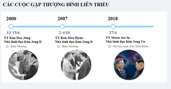 Các cuộc gặp thượng đỉnh liên Triều giữa hai miền trong lịch sử. Info: KoreaNet.