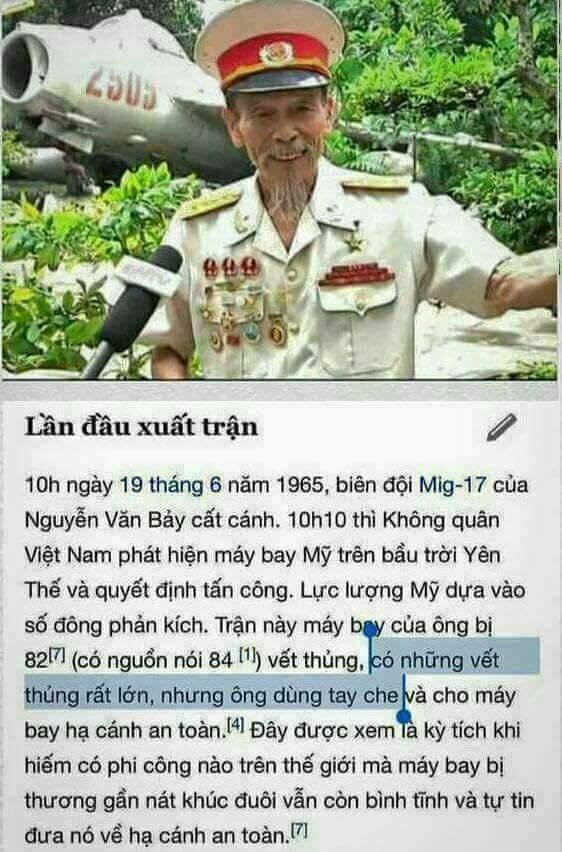 Phi công xuất sắc. Đây là một Phi Công anh dũng và tài ba nhất thế giới !!! Người phi công hiếm có tên là Nguyễn văn Bảy (h́nh dưới đây) đă đem máy bay núp trong mây, tắt máy để tiết kiệm nhiên liệu, chờ máy bay Mỹ đến mới bay ra sát hại.