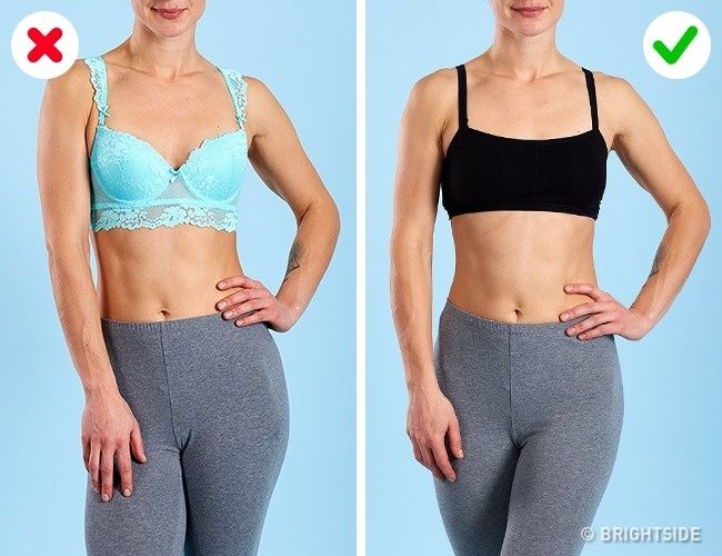Nhiều người nghĩ rằng ngay khi về nhà, bạn nên cởi áo ngực để vòng 1 được nghỉ ngơi. Tuy nhiên, điều này chỉ đúng đối với những người có kích thước vòng 1 nhỏ. Trong tất cả các trường hợp khác, nếu bạn không mặc áo ngực ở nhà đồng nghĩa với việc bạn đang bắt dây chằng hoạt động quá tải. Lựa chọn tốt nhất lúc này chính là mặc áo ngực thể thao, nó giúp cho bạn cảm thấy dễ chịu trong khi vòng 1 vẫn được cố định.