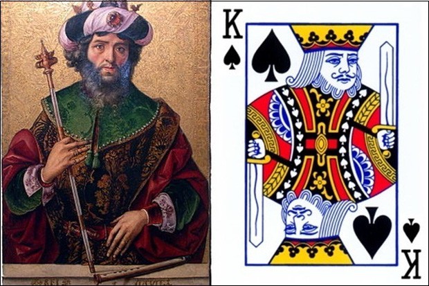 Hình ảnh Caesar trên đồng tiền xu của đế quốc La Mã là ảnh nghiêng và trong 4 quân K chỉ có K rô là mặt nghiêng, trong tay cầm chiếc rìu.