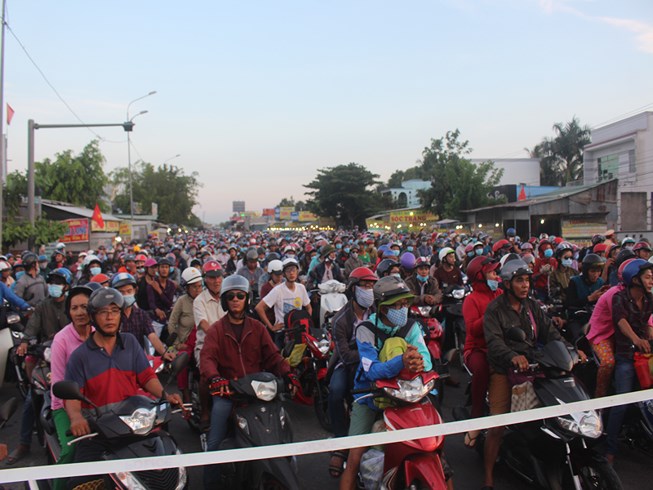 Từ 17 giờ đến khoảng 19 giờ tối dòng người vẫn còn nườm nượp đổ về TP HCM sau kì nghĩ lễ, tuy nhiên áp lực giao thông càng lúc càng nghiêm trọng hơn, các tuyến Quốc lộ kẹt xe kéo dài. Tại một số điểm nóng, người và phương tiện thất thủ đứng tại chỗ không di chuyển được trong thời gian dài.