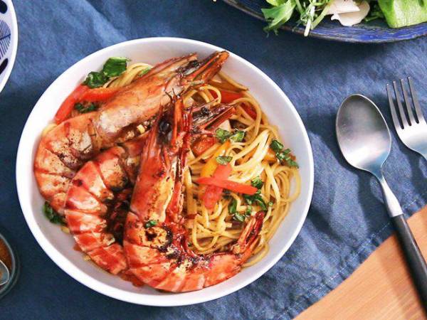 Old  Default Mì Ý xào tôm thơm ngon nóng hổi, lý tưởng cho bữa sáng