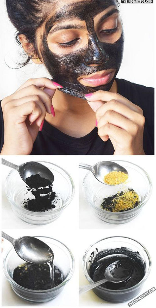 Trộn 2 thìa than hoạt tính với 1 thìa bột gelatin, thêm một chút nước ấm để tạo thành hỗn hợp sền sệt. Thoa đều lên da, để khô rồi lột ngược từ dưới cằm lên. Sau đó, lau mặt lại với khăn mát và thoa kem dưỡng ẩm.