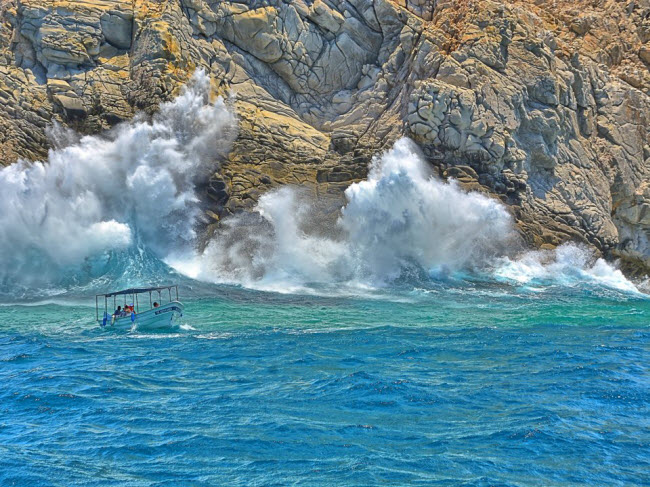 Du khách trải nghiệm những con sóng cực mạnh ở ngoài khơi bờ biển Cabo San Lucas, Mexico.