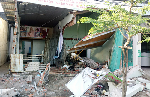 "Tôi cùng vợ và con đang ngủ trên gác xép thì nghe tiếng rầm, mở mắt ra thấy tường nhà bị sập, đầu xe bồn chui vào sát người. Lúc xe được kéo ra thì gác sập xuống", ông Phạm Văn Bộ nói và cho biết, người phụ nữ làm nghề cắt tóc ở căn kế bên cũng may mắn không bị thương.