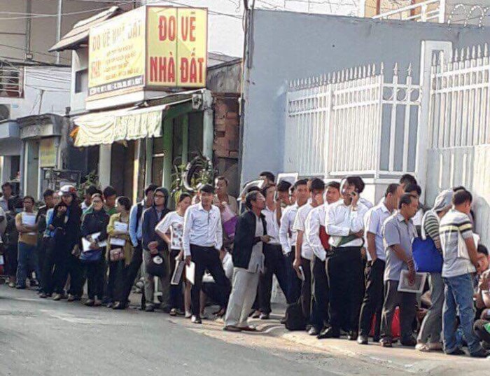 Cảnh hàng trăm người dân xếp hàng dài trước cửa UBND Q.9 làm thủ tục trong cơn sốt đất - Ảnh: ẢNH: C.T.V