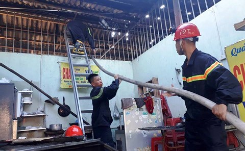 Phát hiện sự việc, một số tiểu thương hô hoán nhau dùng bình chữa cháy dập lửa, đồng thời bê các tài sản, đồ đạc ra ngoài.