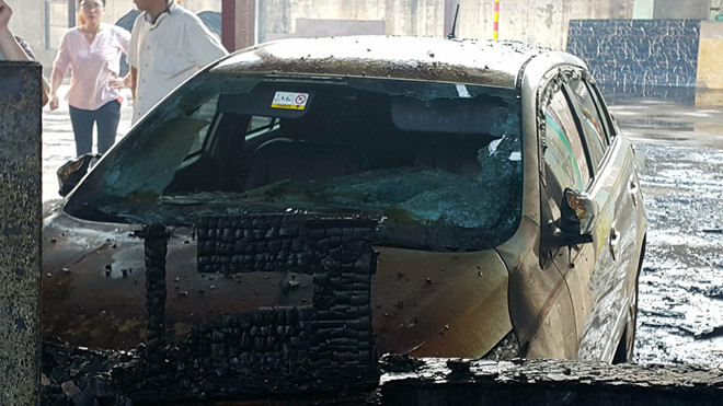 Chiếc ôtô bị biến dạng sau vụ cháy. Ảnh: N.A.