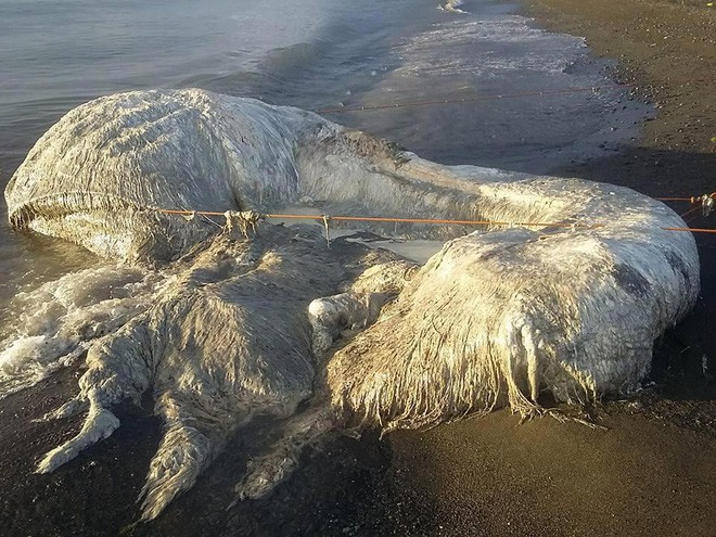 Con globster này đã bước vào giai đoạn cuối của quá trình phân hủy nên phát ra mùi rất đáng sợ. Ảnh: The Sun
