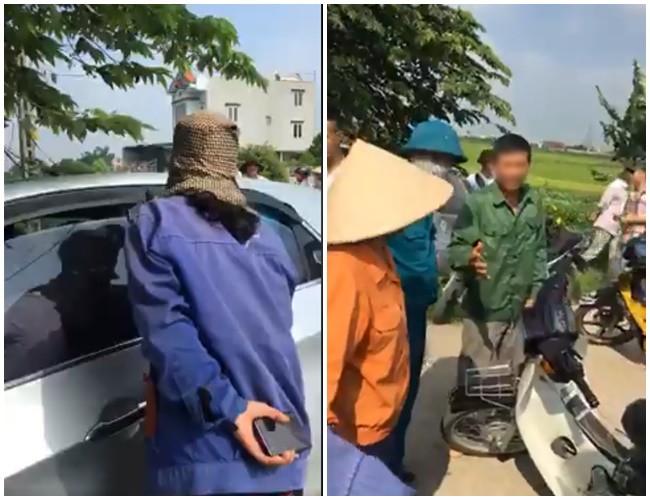 Thấy sự việc ồn ào rất nhiều dân làng đã tập trung vây quanh chiếc ô tô để theo dõi sự việc, tuy nhiên cặp đôi vẫn một mực ngồi trên xe không chịu xuống.