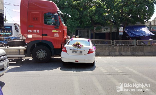 Theo đó vào thời gian trên, xe container BKS 51D 12976 đang lưu thông hướng Vinh - Hà Nội, khi vừa qua cầu Lồi thì bất ngờ chiếc xe hoa BKS 37A - 011.69 lưu thông cùng chiều phía sau vượt lên rồi tạt sang trái trước đầu xe container.