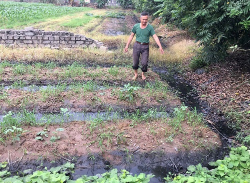 Bà Nguyễn Thị Hoa (SN 1974, ở khu Trại Chuối) cho biết, dân nơi đây quá khổ vì khói bụi nhưng nguồn nước cũng bị đe dọa nghiêm trọng. “Nước thải của nhà máy không biết xử lý như thế nào, xả ra môi trường gây nguy hại ra sao chúng tôi đều không biết. Chỉ biết ruộng rau nước vàng đục lẫn nước màu đen, nhà nào cũng phải lắp cửa kính, ban ngày cũng như ban đêm đều phải đóng cửa kín mít nhưng bụi vẫn lọt vào phủ kín đồ đạc. Đặc biệt cứ mưa xuống là bụi đóng cặn thành từng lớp trên mái nhà, trên nền sân như một lớp tro đen.