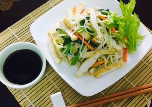 Món bún nước tương có thể “nâng cấp” thêm đậu hủ chiên ăn kèm.