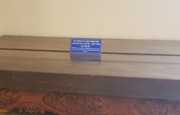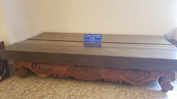 Tuy nhiên, không hiểu vì lý do gì mà chỉ trưng bày một thời gian rất ngắn, bộ sập gỗ này lại bị xé chằng chịt, mặt gỗ đổ mọt và vân gỗ cực xấu xí.