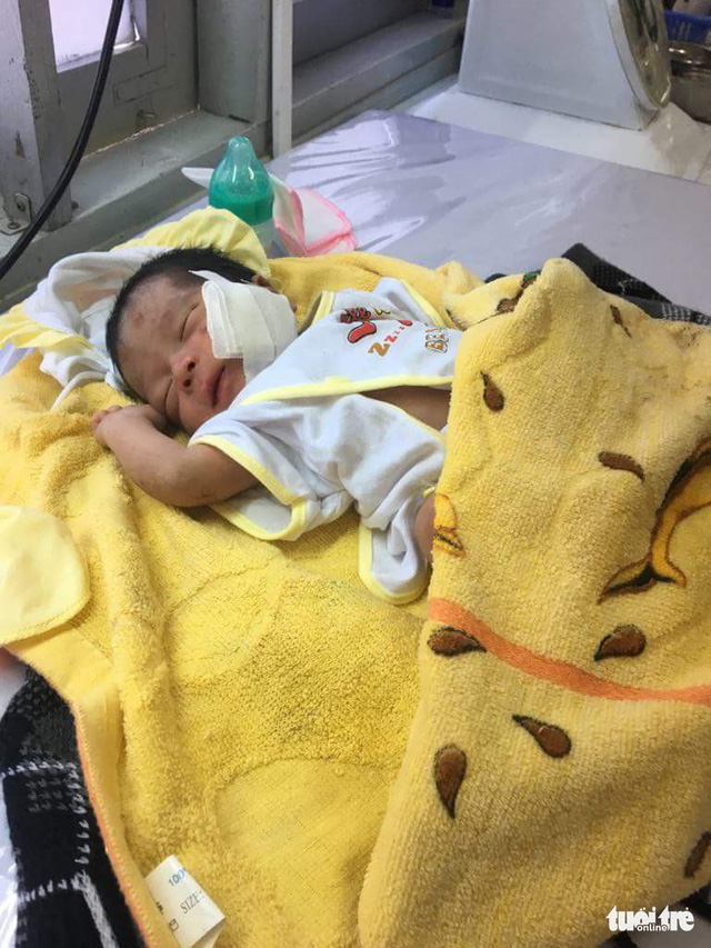 Theo một bác sĩ tiếp nhận sơ cứu, bé sơ sinh trên (khoảng 1 ngày tuổi) được đưa đến cấp cứu trong tình trạng khắp người dính đầy đất cát, mặt bên phải bị một vết thương và trên người vẫn còn nhau rốn.