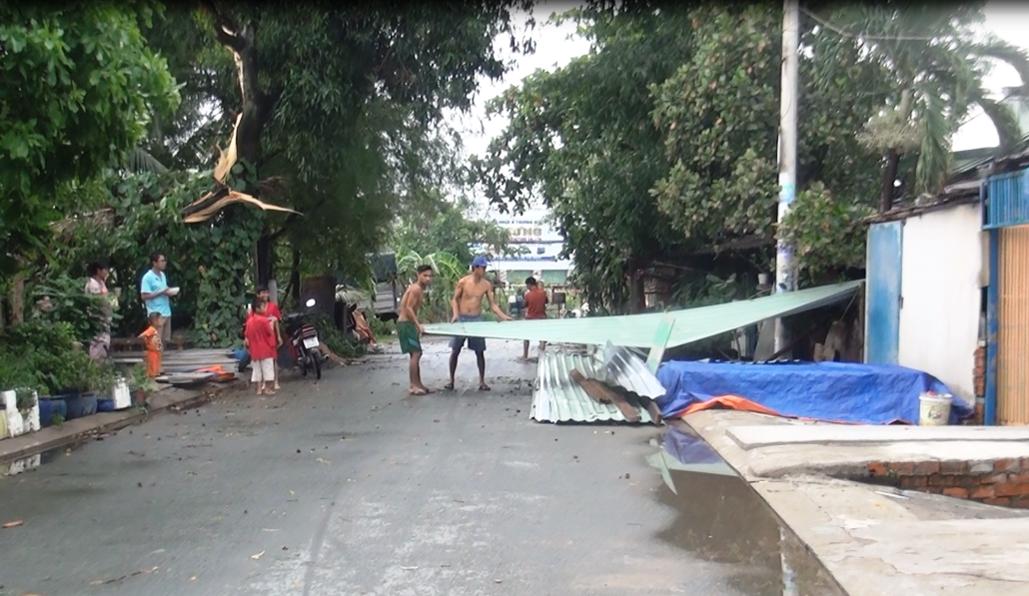 Nhiều mái tôn của nhà dân trên đường Nguyễn Đình Kiên (P.Tân Tạo A, Q.Bình Tân) bị thổi bay. Nhiều tấm tôn bị gió cuốn bay khỏi nhà hàng chục mét. Nhà số 13 Nguyễn Đình Kiên bị nhiều tấm tôn của những nhà khác bay sang, xuyên vào nhà tắm. May mắn vụ việc không làm ai bị thương. Mưa to, gió lớn đã làm hàng loạt cây xanh dọc tỉnh lộ 10, Trần Văn Giàu (Q.Bình Tân) bị tét nhánh, bật gốc đè sập mái nhà dân, biển quảng cáo. Nhiều cây xanh dọc kênh Tân Tạo (xã Lê Minh Xuân, H.Bình Chánh) đổ ngã nằm la liệt.