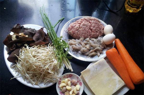 Bạn lấy miến và mộc nhĩ đem đi ngâm với nước nóng cho nở ra và mềm rồi băm nhỏ.